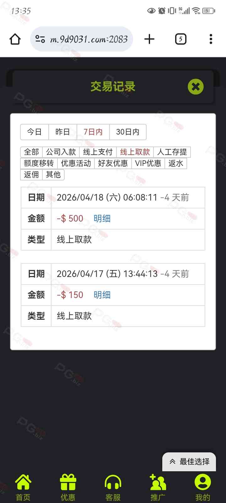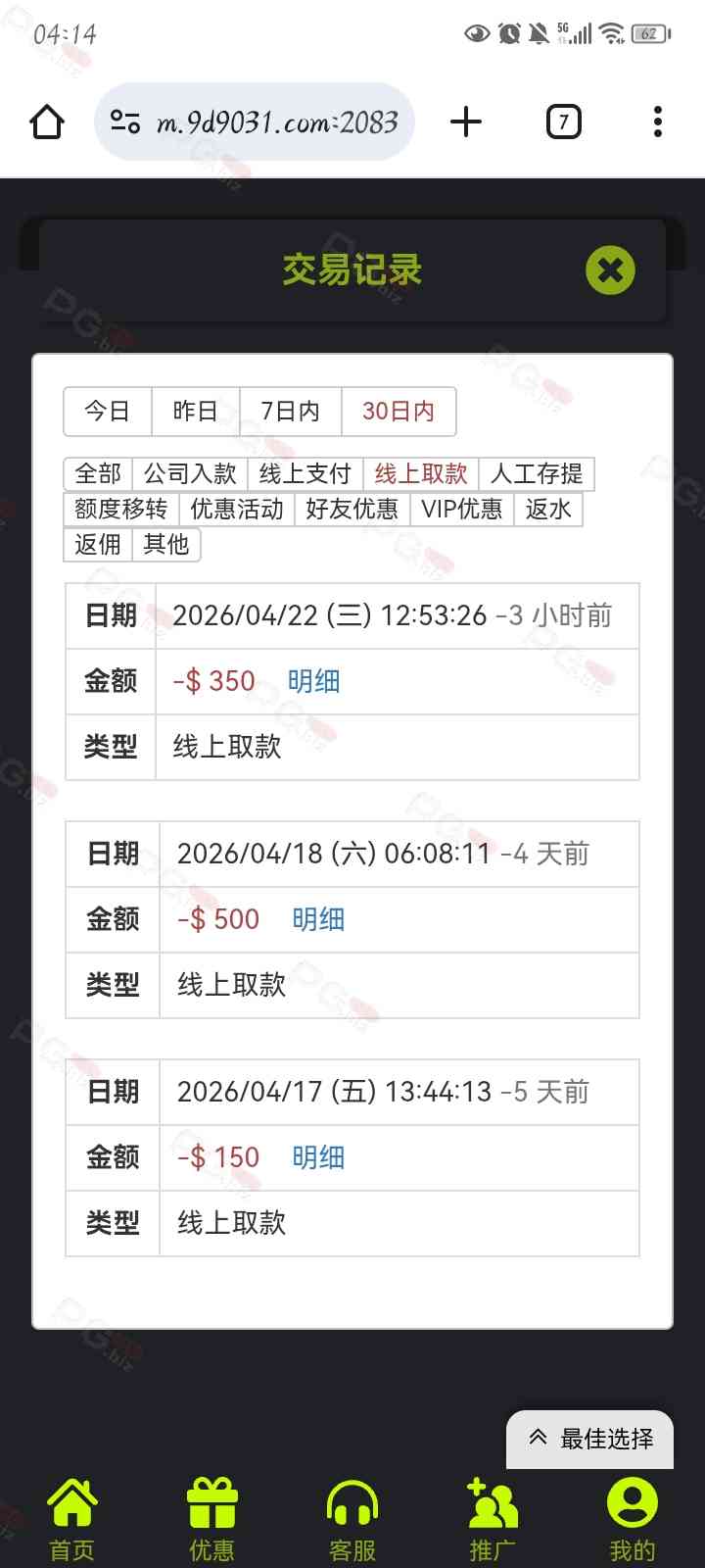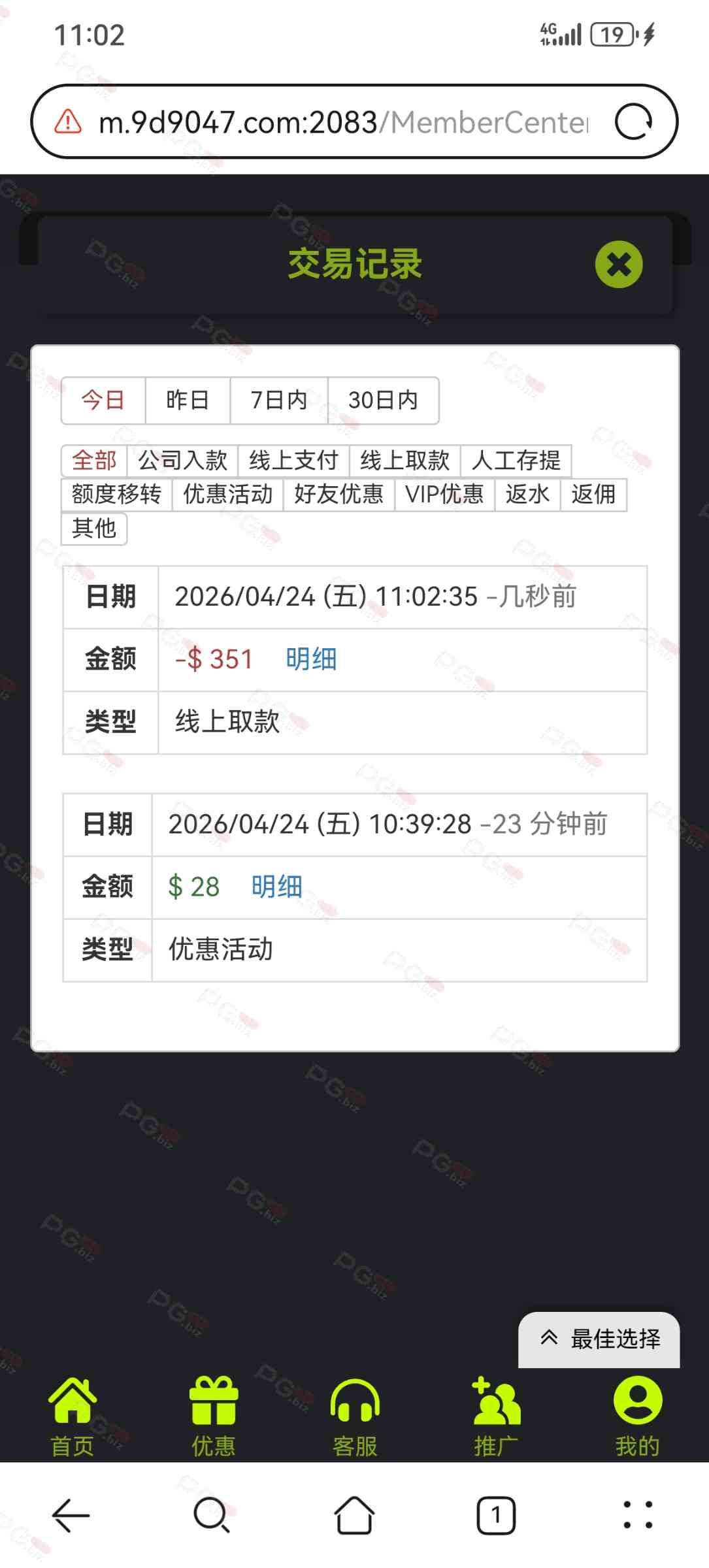 撸成功的老哥,请跟客服说您是从PG论坛 【PG.Biz】过来的。
