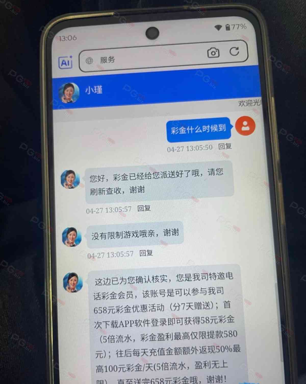 撸成功的老哥,请跟客服说您是从PG论坛 【PG.Biz】过来的。